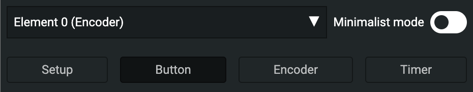 - Right panel: Shows the configuration of the selected Element. Changing the configuration of the module happens here, one Element at a time.